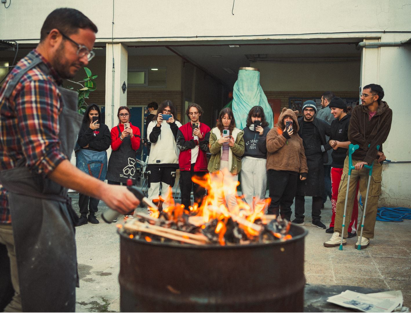 Al calor de la lumbre de cocción, el encuentro contó con una sesión de zambomba donde se cantaron letras con nuevos elementos emergidos del paisaje jerezano. Enriquecida con la participación de Lucía Franco y Claudia GR Moneo, autoras junto a Belenish del libro Lah Letrah de Nuehtra Zambomba, esta jornada festiva prenavideña estuvo acompañada de chocolate caliente, mantecados y empanadas preparadas por la comunidad de la escuela.