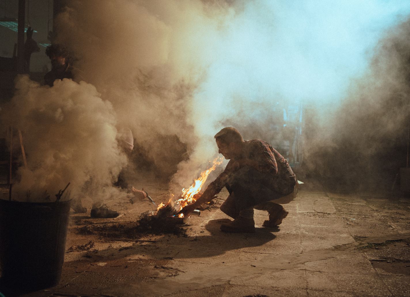 Una vez incandescente, la pieza se sumerge en el engrudo descrito donde toma colores y texturas provenientes del entorno cercano.
