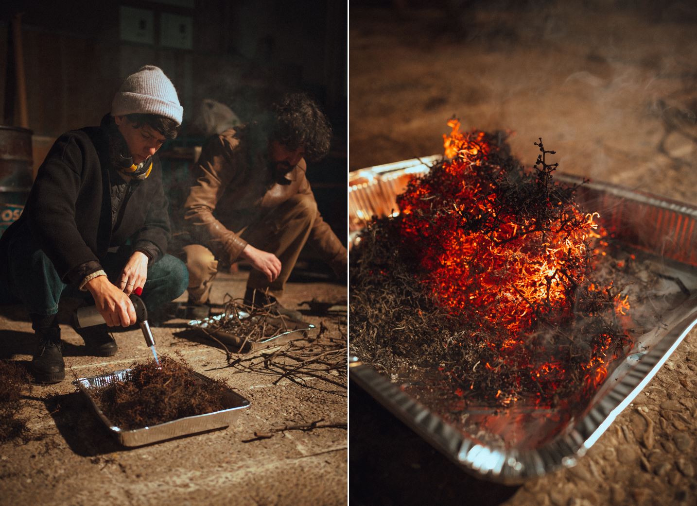 Las piezas para el ahumado se empaquetaron con materiales vegetales del paisaje jerezano, que dejaron sus huellas en la superficie tras más de 24 horas de lenta cocción en el interior de un recipiente metálico lleno de serrín.